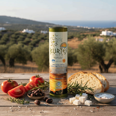 Kurtes stammt aus der geschützten Ursprungsregion Messara auf Kreta und wird aus 100 % Koroneiki-Oliven gewonnen.